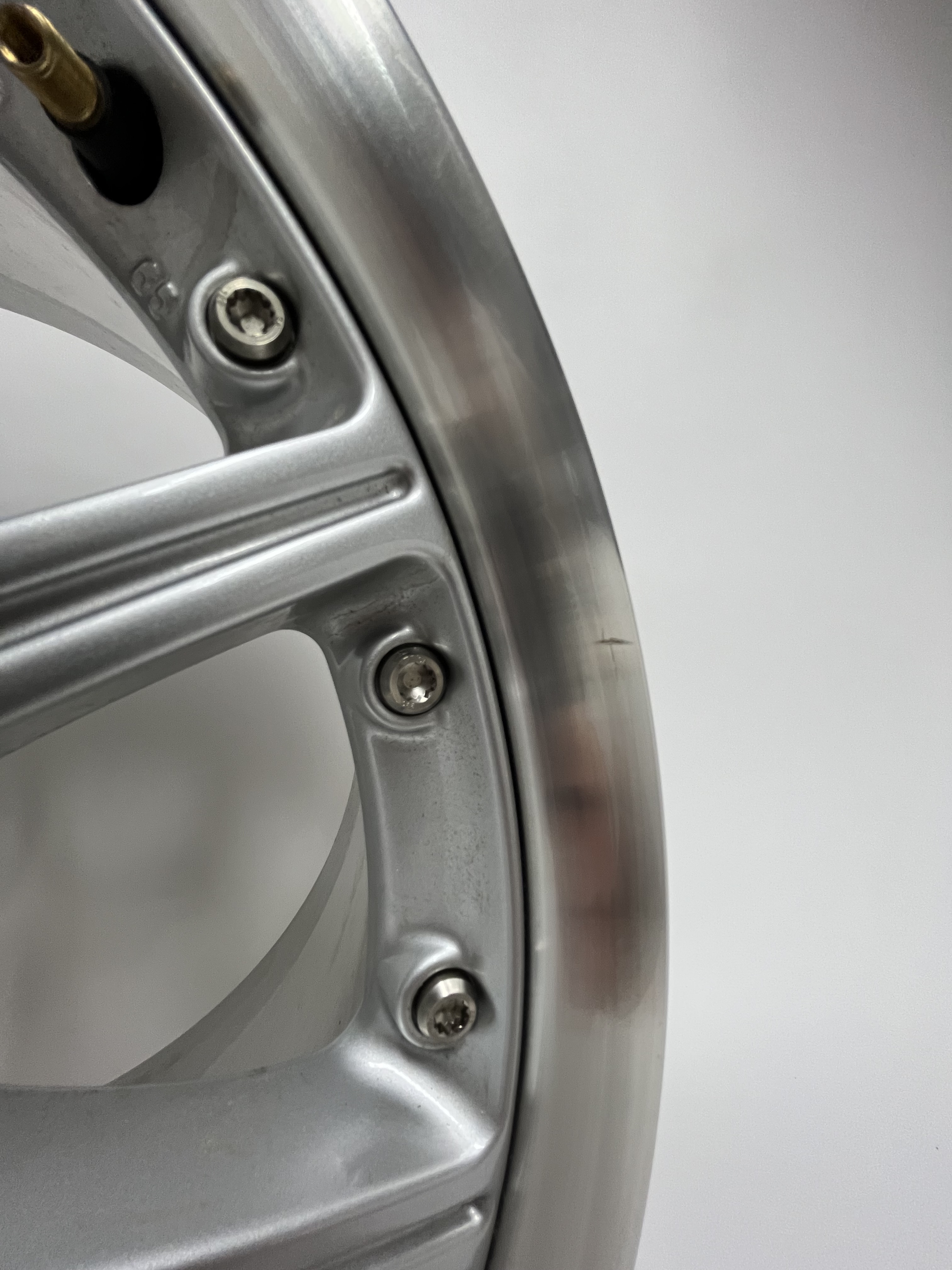 Die Felge befinden sich in einem sehr guten Allgemeinzustand. Wie den Bildern zu entnehmen ist, handelt es sich bei den Gebrauchsspuren um übliche Lagerspuren. Auf der Außenseite finden sich zwei oberflächliche Kratzer (siehe Bilder), diese sollten sich allerdings durch einen Fachmann entfernen lassen.