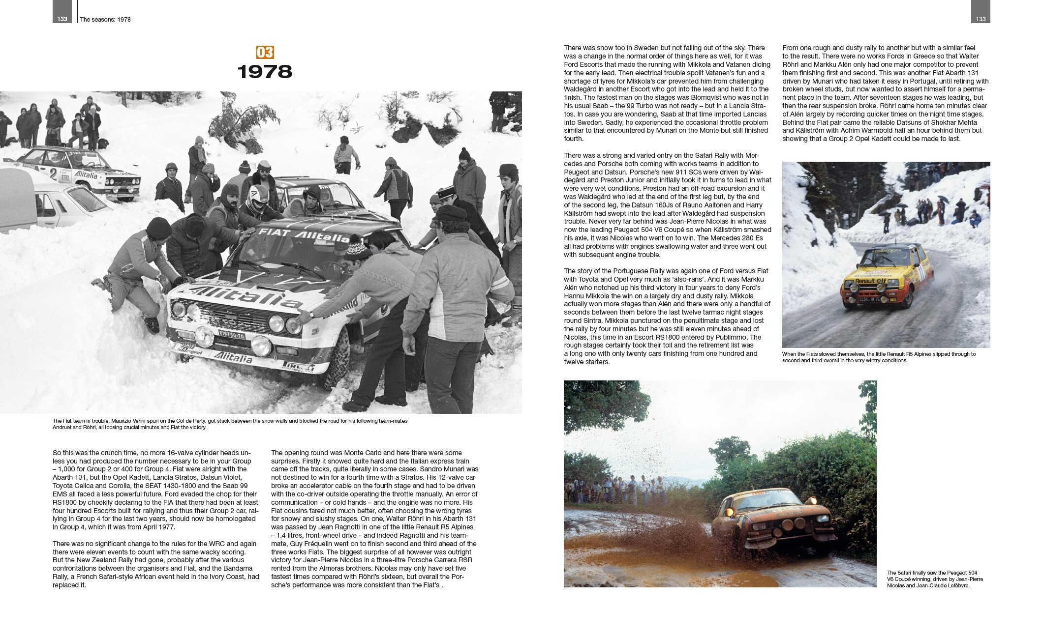 Die 1973 gegründete Rallye-WM war in ihren ersten Jahren an Vielfalt kaum zu überbieten, und das galt nicht nur für die Läufe sondern auch für die Fahrzeuge. Mehr als ein Dutzend Hersteller baute siegfähige Autos nach dem Reglement der Gruppe 4. Da trat die leichtgewichtige Alpine, der vollblütige Stratos und der Sportwagen Porsche 911 gegen Limousinen wie den Peugeot 504, Opel Kadett oder Mercedes 500 SLC an. Dazu gesellten sich die aufstrebenden Japaner Toyota und Datsun. All diese Autos begegneten sich auf Augenhöhe, bis Audi zum Ende der Gruppe 4 mit dem revolutionären Quattro kam und den Rallyesport in ein neues Zeitalter beförderte.